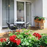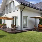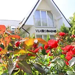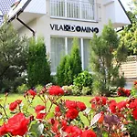 Die 7-Zimmer- Vila Domino liegt in einem Wohngebiet von Palanga und bietet Gästen die Möglichkeit, sich auf einer Terrasse zu entspannen.